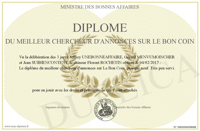 Diplome Du Meilleur Chercheur D Annonces Sur Le Bon Coin